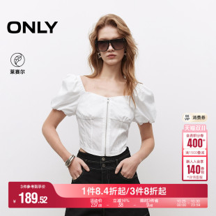 立体腰封收腰雪纺衫 ONLY2025夏季 拉链短款 莱赛尔甜美泡泡袖 女 新款