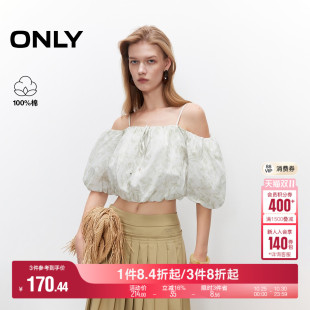 雪纺衫 甜美可调节一字肩印花花苞泡泡袖 女 新款 ONLY2025夏季