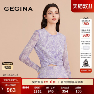 年新款 GEGINA吉吉娜女装 长袖 雪纺衫 女士上衣商场同款 短款 印花