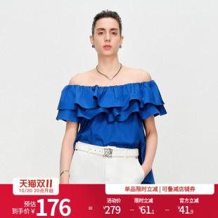 纯欲甜辣妹小上衣别致绝美高级感衬衣 女夏季 一字肩荷叶边法式 衬衫