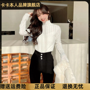 百搭打底上衣女 修身 justcc卡卡女装 官方旗舰双叶纹绒感立领蕾丝衫