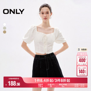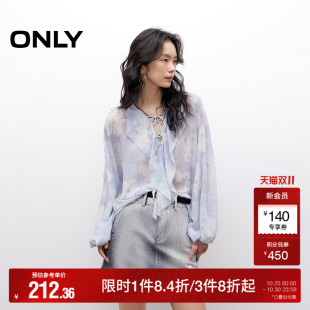雪纺衫 ONLY2025夏季 荷叶边轻薄质感面料遮肉显瘦泡泡袖 法式 女 新款