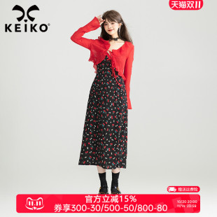 防晒披肩小罩衫 KEIKO 吊带裙外搭薄款 女25秋季 荷叶边红色雪纺开衫