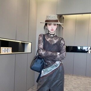 显瘦百搭长袖 纯欲镂空微透蕾丝上衣修身 T恤 新款 BABY2025秋季