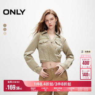 女 蕾丝衫 124251005 潮流复古做旧交叉领口短款 ONLY夏季