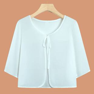 薄款 洋气妈妈夏装 雪纺系带罩衫 外搭短款 小外搭 防晒披肩配裙子新款