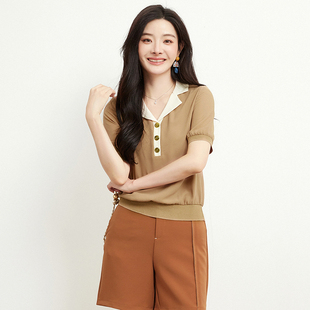 女 上衣舒适质感雪纺衫 2025年夏Outlets正品 高端KA系列拼色五分袖