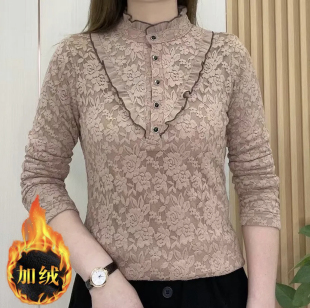 洋气小衫 木耳立领蕾丝衫 打底衫 长袖 上衣 加绒加厚秋冬气质内搭修身