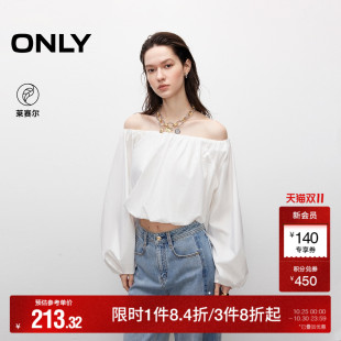 雪纺衫 ONLY2025秋季 长袖 甜美一字肩花苞下摆设计宽松短款 女 新款