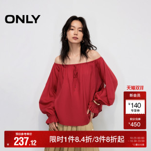 雪纺衫 ONLY2025秋季 口宽松长袖 度假风绑带一字领口喇叭袖 女 新款