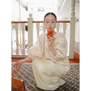 半高圆领侧边金属排扣上衣时尚 新款 通勤 女2025年秋季 佳人苑雪纺衫