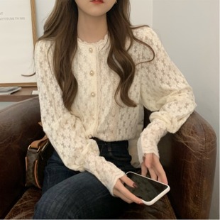 女上衣小衫 百搭打底衫 内搭长袖 半高领灯笼袖 蕾丝衫 2024秋冬新款