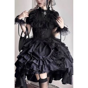 黑哥特风洛丽塔lolita黑白色衬衫 提拉裙女哥特风裙子两件套女套装