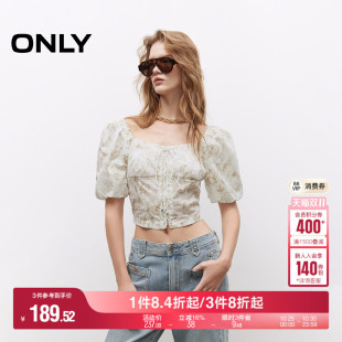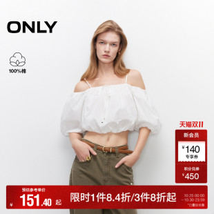 雪纺衫 ONLY奥莱2025夏季 短款 甜美系带一字肩浪漫花苞泡泡袖 女 新款