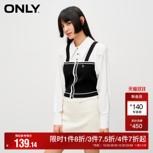 时尚 秋季 通勤假两件泡泡袖 短款 女 雪纺衫 ONLY奥莱