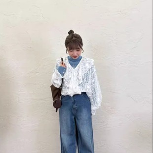 纯欲辣妹收腰显瘦上衣 衬衫 BABY2025秋冬新款 设计感蕾丝拼接长袖