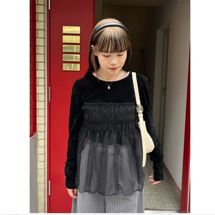 上衣打底 DoubleSeven纯欲风丝绒拼接木耳花边娃娃衫 2025冬季 新款