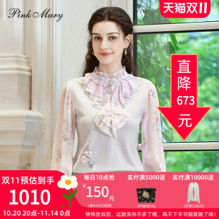 • 拼接荷叶领通勤上衣PMANW8022 时尚 粉红玛琍套头衫 女秋冬新款