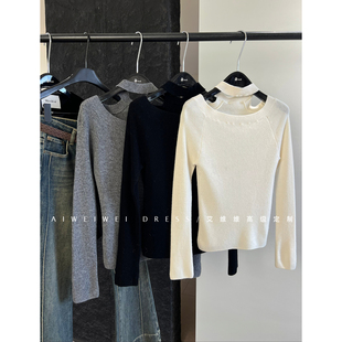 挂脖露肩纯欲显瘦针织衫 小众设计师款 打底单穿毛衣 100%羊毛