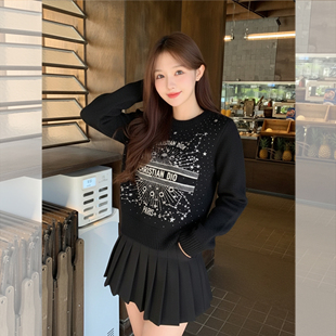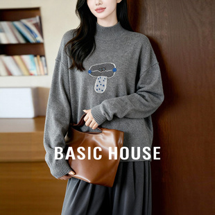 圆领上衣女 百家好慵懒风刺绣套头毛衣小个子秋冬新款 Basic House