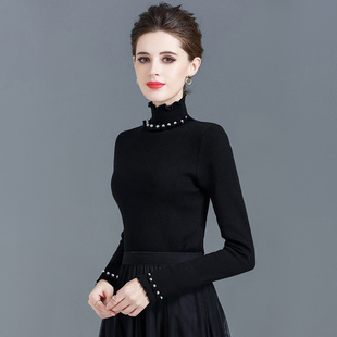 高领毛衣女秋冬内搭木耳边加绒加厚针织上衣黑色打底衫 冬洋气保暖