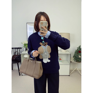 鸬鹚 26早春新款 拉夫小熊毛衣 新年红重磅立体刺绣小熊毛衣针织衫