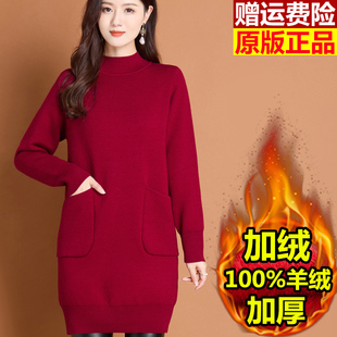 冬季 毛衣女秋冬一体绒加绒打底衫 中长款 鄂尔多斯市100纯羊绒新款