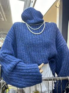 韩国东大门2025冬新纯色高领加厚羊毛毛衣女百搭堆堆领慵懒风外套