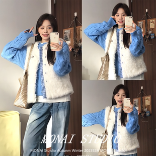慵懒风白色羊羔毛坎肩马甲背心女秋冬学院风毛衣 原野空间