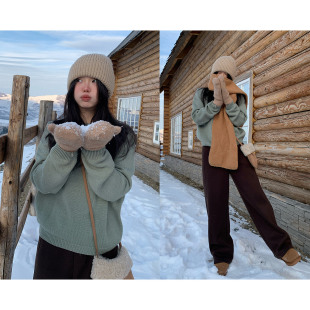 上衣 针织衫 一三良品小个子 复古莫兰迪纯色圆领套头毛衣女东短款