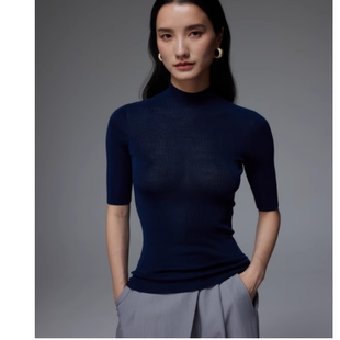 长袖 可机洗100%美丽诺羊毛半高领中袖 精纺扬子纱短袖 镇店之宝