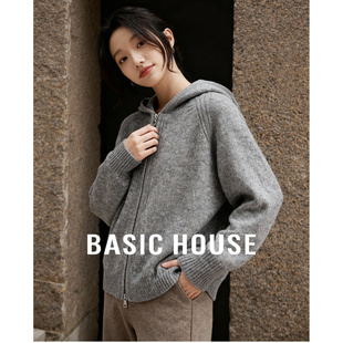 宽松慵懒毛衣外套女2025冬季 百家好米色连帽针织开衫 House Basic