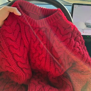 宽松针织衫 加厚版 韩版 新款 上衣潮 慵懒风红色麻花套头毛衣女冬季