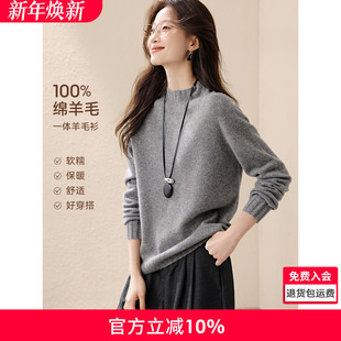 半高领100%绵羊毛针织衫 新款 女 2025秋季 沫晗依美无缝一体羊毛衫