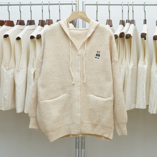 • 2025新款 女秋冬季 百家好连帽毛衣开衫 显瘦针织上衣 100%绵羊毛
