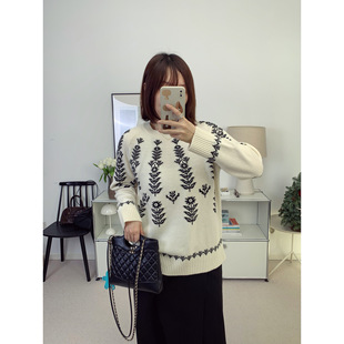 鸬鹚 25秋冬新款 费尔岛植物花卉针织套头毛衣针织衫 er刘雯同款