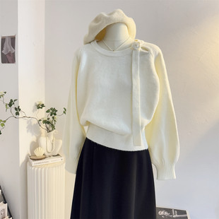 气质方领挂脖飘带针织衫 法式 毛衣上衣女 新款 HOLDER十三行2025冬季