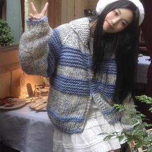 胖仙子原创毛衣条纹撞色针织外套女秋冬季 上衣 美拉德设计小众开衫