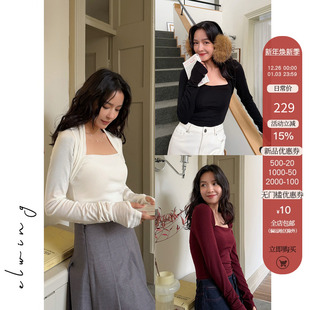 • 打底衫 方领长袖 上衣 假两件显瘦修身 Elwing原创复古天丝羊毛针织衫