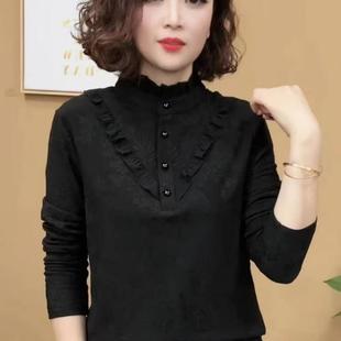 木耳边百搭上衣 女中年妈妈气质长袖 2025秋冬新款 一体绒保暖打底衫