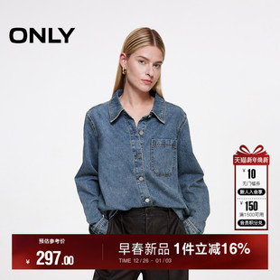 ONLY2026春季 爆款 新款 复古时尚 女 柔软翻领宽松牛仔衬衫 热卖