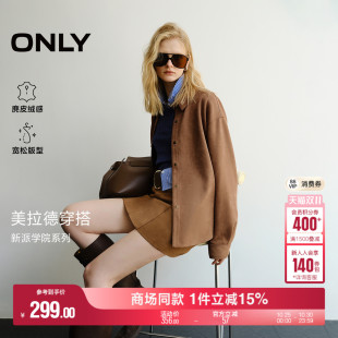 衬衫 ONLY2025冬季 宽松翻领PU麂皮绒感做旧按扣长袖 简约款 女 新款
