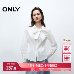 翻领蝴蝶结正肩收腰衬衫 精致刺绣气质长袖 女 新款 ONLY2025秋季