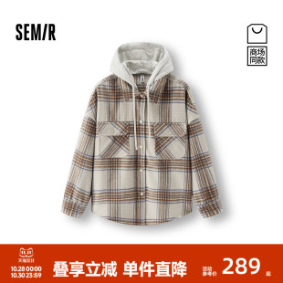 外套上衣格纹仿呢2025新款 商场同款 女冬中长款 衬衫 上衣 森马长袖