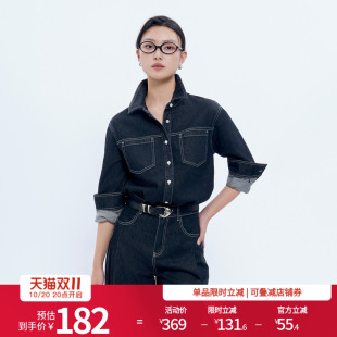 衬衫 婉甸2025年秋季 饰长袖 硬核黑复古牛仔风明线装 1243S08DS1 新品