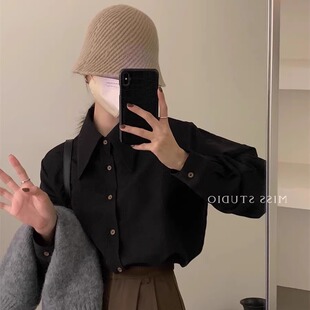 纯棉衬衣女英伦简洁时尚 高级黑色宽松长袖 设计感显瘦上衣 新款 秋季