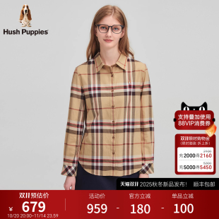 全棉磨毛 复古格纹棉感休闲百搭衬衫 暇步士女装 新款 女 2025秋季