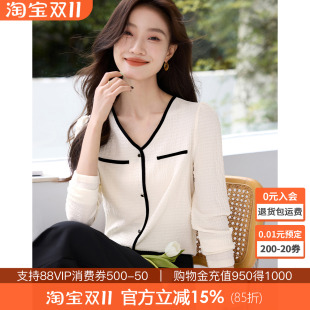 新款 含桑蚕丝2025秋季 轻奢高级感上衣通勤职业衬衣 女长袖 白色衬衫
