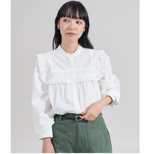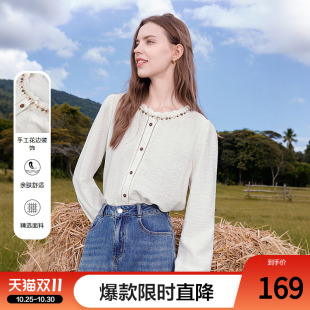 新款 betu百图法式 2025年秋季 女长袖 白衬衣显瘦上衣 花边圆领衬衫