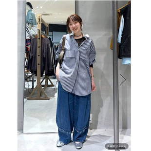 口宽松条纹衬衫 NA2025秋季 双层可拆卸领螺纹袖